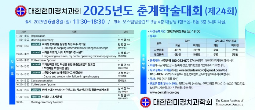 [치의신보] 2024년도 대한현미경치과학회 춘계학술대회(제24회) 페이지 정보 작성자 대한현미경치과학회 댓글 0건 조회 55회 작성일 25-09-02 11:42 목록 본문 [치의신보] 2024년도 대한현미경치과학회 춘계학술대회(제24회) 다음글[치의신보] 2024년도 대한현미경치과학회 추계학술대회(제23회) 25.09.02 댓글 0 댓글목록 등록된 댓글이 없습니다.